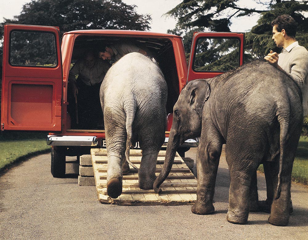 Dann gab es die Schlagzeilen generierenden Fotos vom Transit als Reisemobil für Elefanten (1965), vom Transit-Linienbusverkehr auf der Marathondistanz London-Australien (16.000 Kilometer) und den Relax-Bussen von Bands wie The Tremeloes, Status Quo oder Coldplay. Nicht zu vergessen der Auftritt der spektakulären, 7,40 Meter langen Transit-Stretch-Limousine (2007) oder jener von Paparazzi verzweifelt gesuchte weiße Transit Kastenwagen, den die britischen Royals William und Kate 2013 während ihrer Verlobungszeit in Anglesey für Inkognito-Touren nutzten.