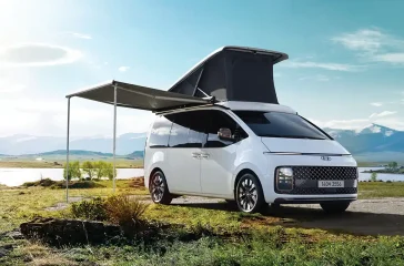 Das Hyundai Staria Camper Concept ist eine innovative Elektro-Wohnmobil-Studie auf Basis der neuen Staria Elektroversion. Ausgestattet mit einer 800-Volt-Architektur und einer 84 kWh Batterie, bietet der 5,26 Meter lange Camper eine Reichweite von rund 400 Kilometern. Ein besonderes Highlight ist das integrierte 520-Watt-Solarmodul im Aufstelldach, das bis zu 2,6 kWh Strom pro Tag für autarkes […]