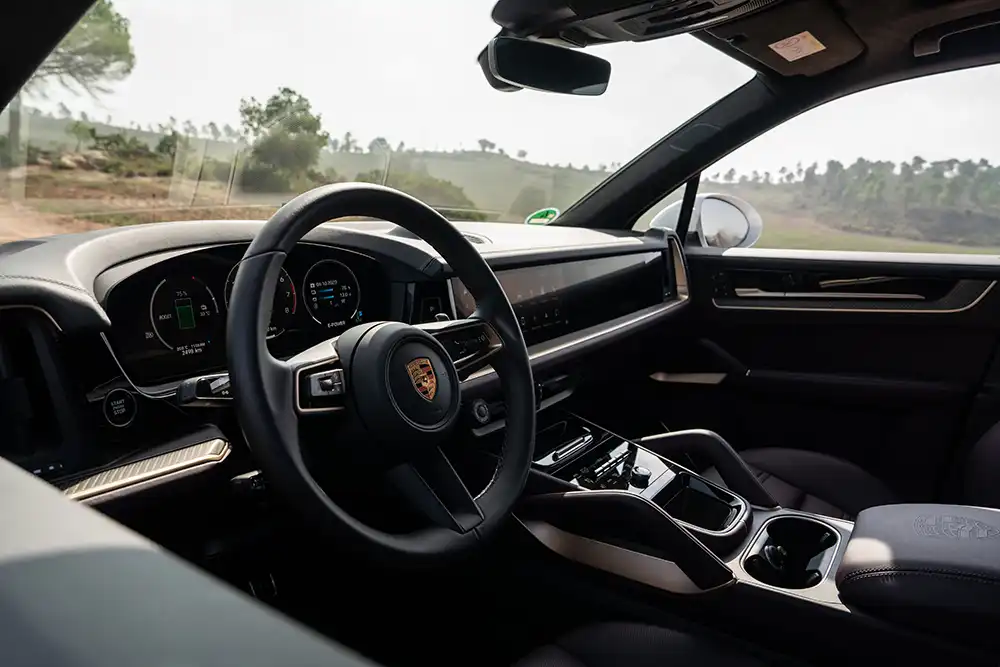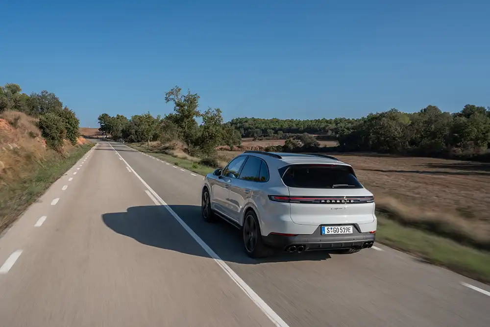 Mit serienmäßigem Torque Vectoring Plus (PTV) gelingt das dem Cayenne Turbo E-Hybrid dabei noch eine Spur souveräner. Präzise Bremseingriffe am kurveninneren Hinterrad verbessern das Lenkverhalten und die Lenkpräzision spürbar. Ein gezieltes Sperren des Differentials hilft beim Herausbeschleunigen. Der E-Antrieb gleicht dabei Verschnaufpausen des Turbos aus und schiebt den stärksten Cayenne so vehement aus der Kurve, als wäre die Schwerkraft nur ein federleichter Spielball.