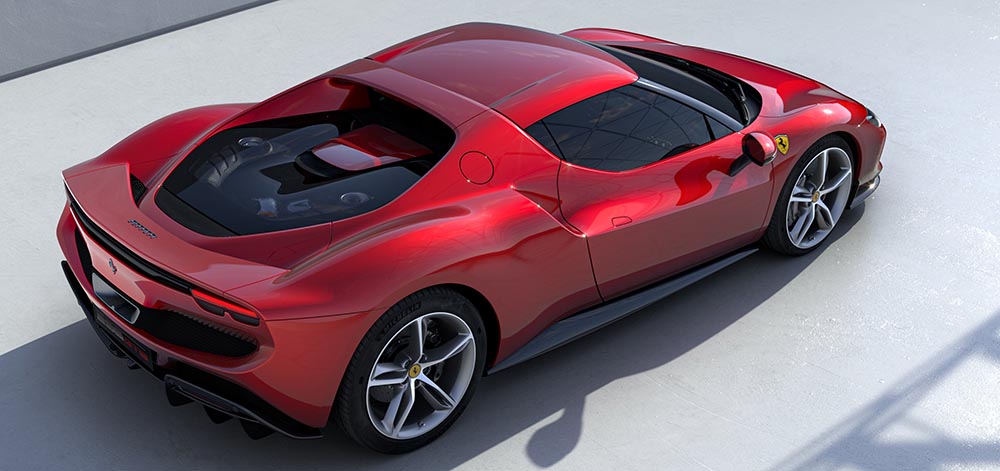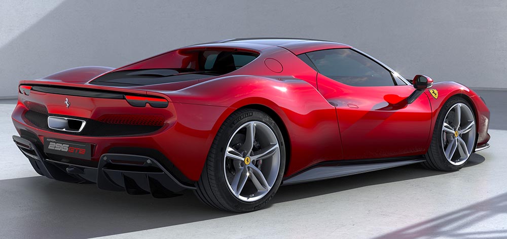 Der zweite Plug-in-Hybrid der Marke kombiniert erstmals einen aufgeladenen V6-Benziner mit einem Elektromotor. Der 2,9-Liter-Turbo wurde komplett neu entwickelt, liefert eine Leistung von 663 PS und dreht bis 8.500 Touren. Hinzu kommen 122 kW/167 PS aus dem E-Motor, wodurch bis zu 610 kW/830 PS auf die Hinterachse geleitet werden können. Das Systemdrehmoment beträgt 740 Nm. Für die Kraftübertragung kommt eine modifizierte Variante der aus dem SF90 bekannten Achtgangautomatik zum Einsatz.