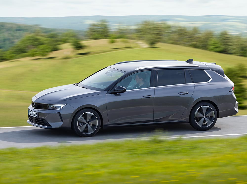 Wer gerne auch elektrisch unterwegs ist, kann zwischen zwei Plug-in-Hybriden mit 133 kW/180 PS oder 165 kW/225 PS wählen. Beide erlauben Sprints in unter 8 Sekunden und bis zu 235 km/h Topspeed. Dank E-Motor und 12,4 kWh großer Batterie können die Teilzeitelektriker zudem bis zu 60 Kilometer emissionsfrei fahren. Mit 54 kWh großer Batterie bietet die 115 kW/156 PS starke Version Electric sogar 416 Kilometer elektrische Reichweite. Zunächst wird die BEV-Variante im Frühjahr für den kompakten Astra und ab Herbst auch für den Kombi verfügbar sein.