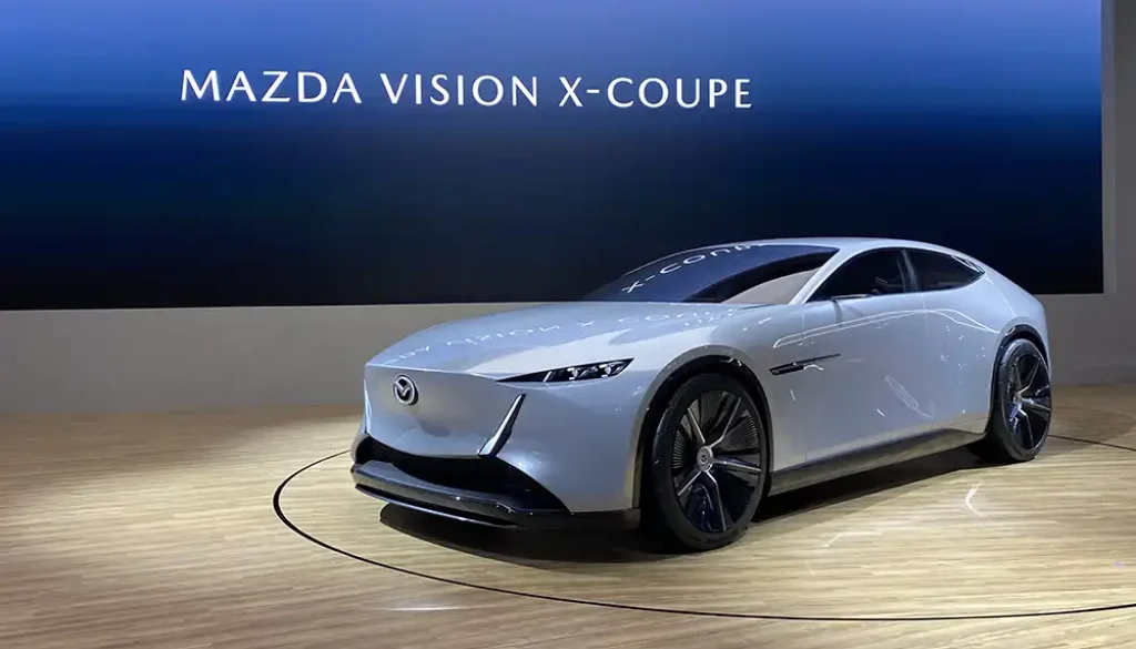 Das Vision X-Coupé ist ein über fünf Meter langes Plug-in-Hybrid-Coupé mit 510 PS, das CO₂ aus der Luft filtert. Es wurde erstmals auf der Japan Mobility Show 2025 vorgestellt.