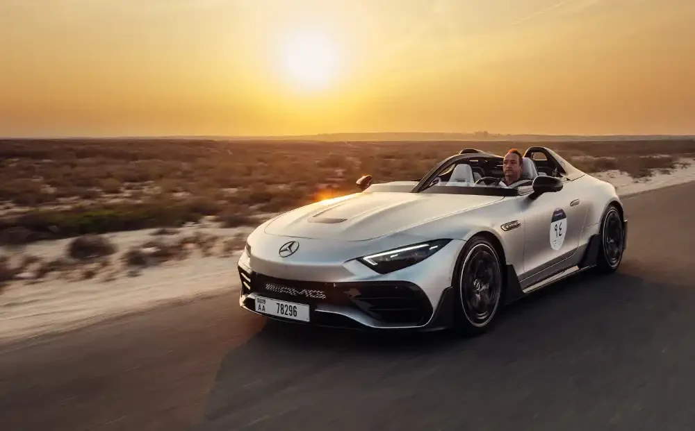 Mercedes hat schon öfter Autos gebaut, die mehr Wind als Komfort kannten. Der 300 SLR von 1955, mit dem Stirling Moss die Mille Miglia gewann, war ein Rennwagen mit Nummernschild. Jahrzehnte später zitierte der SLR Stirling Moss diese Haltung – kompromisslos, offen, limitiert auf 75 Exemplare. Der Pure Speed steht in dieser Tradition. Aber er ist kein Retro-Remake. Er ist die Fortschreibung der Idee mit den Mitteln von heute.