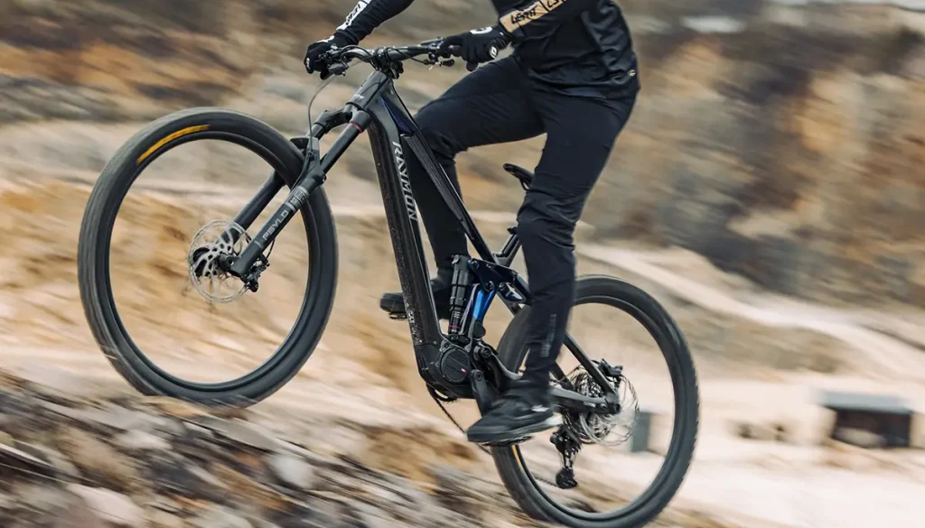 Allen Versionen gemeinsam ist ein Carbonrahmen, dessen Geometrie sowohl auf Touren bergauf als auch auf Abfahrten ausgelegt ist. Bei den Laufrädern setzt Raymon auf ein Mullet-Setup mit 29 Zoll vorn und 27,5 Zoll hinten.