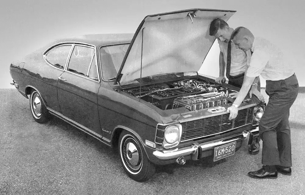 1968: Opel entwickelt auf Basis des drei Jahre zuvor lancierten Kadett (B) den Typ Kadett Stir-Lec mit Stirling-Heißgasmotor im Heck des Kompaktklassemodells. Der Heißgasmotor treibt einen Generator an, der die 14 Bleibatterien speist. Der Sportwagen Opel GT wird vorgestellt und beschleunigt ebenso wie die 1970 folgenden Modelle Manta und Commodore GS/E den Imagewandel von Opel hin zu einer Marke mit dynamischem Image